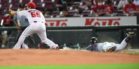 阪神・小幡が執念ヘッスラ!スクイズに続き2打点目、リクエストで判定覆る