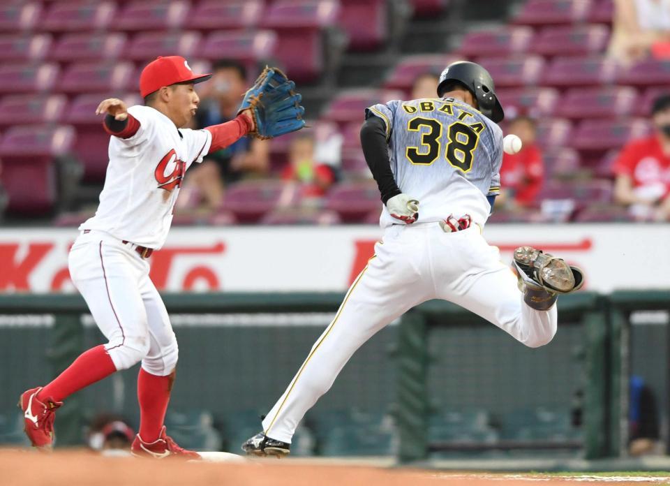 阪神・小幡がプロ初打点 絶妙セーフティースクイズ&執念のヘッスラで2安打2打点
