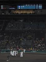 2回途中、交代を告げられ、ベンチに戻る西勇