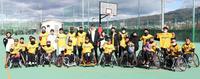 関西unbalanceのメンバーと車いすソフトボールを楽しむ糸井(左)