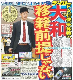 大和、FA権行使“争奪戦”へ 虎は全力慰留!!金本監督「残ってほしい」