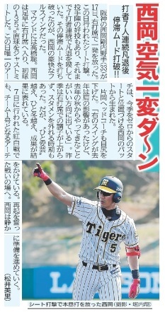 さすが西岡!右打席で空気一変ダ~ン 片岡Cも納得「いい方向に」