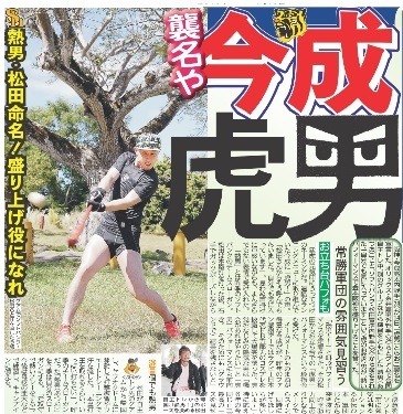 「熱男」とは昨季のソフトバンクのチームスローガン。松田は本塁打を打った後、右手でガッツポーズしながら「熱男~!」と叫ぶパフォーマンスを定着させた。その松田からお立ち台での「虎男」パフォーマンスという珍指令も受けた。