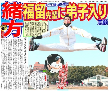 阪神のドラフト6位ルーキー・緒方凌介外野手(22)=東洋大=が2日、大阪市内の長居運動公園で始動した。昨年末に母校・PL学園出身の福留孝介外野手(35)の入団が決定し、高校時代に数々の伝説を残した先輩に弟子入りを志願。