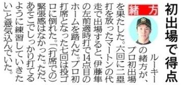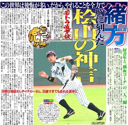 デイリースポーツでも紙面上での扱いは大きくなり、ついに1面でも「緒方」の文字が躍りました。