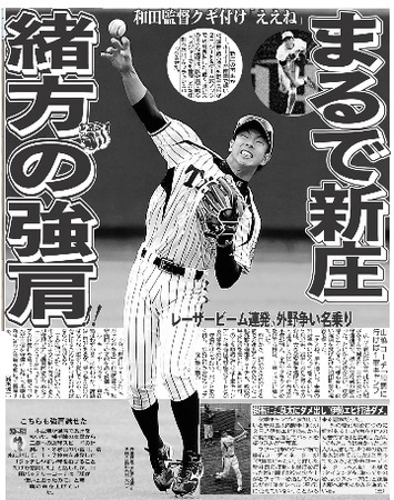 新庄の再来か‐。ルーキーが南国で輝いた。阪神・緒方凌介外野手(23)が2日、シート&ゲーム式ノックで“強肩発動”した。低く、強い矢のような送球は、鉄砲肩で鳴らし、メジャーでも活躍した新庄剛志氏(41)をフラッシュバックさせた。