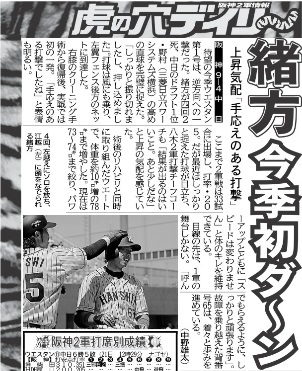 1軍を目指す若虎が〝再スタート〟を切った。昨年9月に右膝半月板の手術を受けた緒方が、ウエスタン公式戦で今季初安打初打点となる二塁打を放った。「やっと始まったなというか、〝開幕〟したという感じですね」。