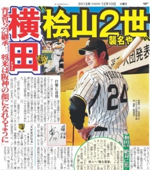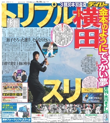 横田は理想の選手に元阪神・金本知憲氏(デイリースポーツ評論家)、オリックス・糸井嘉男外野手の名前を挙げ、球団史上初となる「打率3割、30本塁打、30盗塁」のトリプルスリー達成を将来的な目標に掲げた。