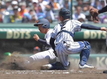 打席には宮崎商の日高有希也。宮崎大会で打率・524を記録したリードオフマンがこの好機で変化球をはじき返した。打球がセンターへ転がると、果敢にチャージした田村の肩が唸る。その瞬間、甲子園の風がやんだ。