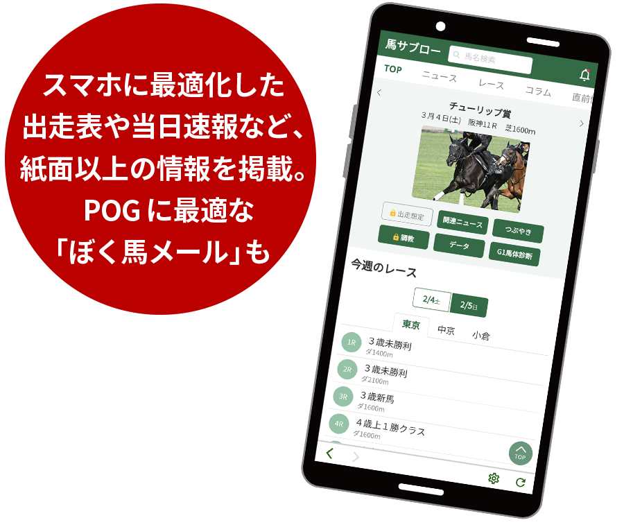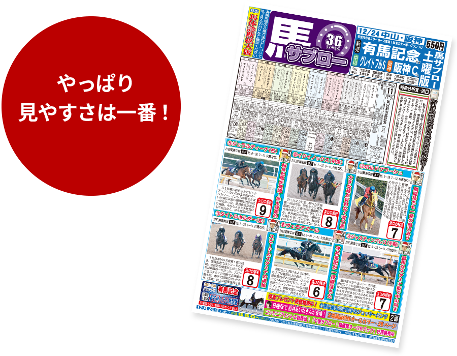 電話投票でJRA開催全レースの馬券が買えるようになったことを機に、1999年3月、業界初36レースすべての詳細な出走表を掲載する競馬新聞として創刊。以来2000年に有料携帯サイト、2007年に有料PCサイト、2013年にスマホアプリ、2018年にコンビニプリントサービスをスタートするなど、常に新しい挑戦を続けている。